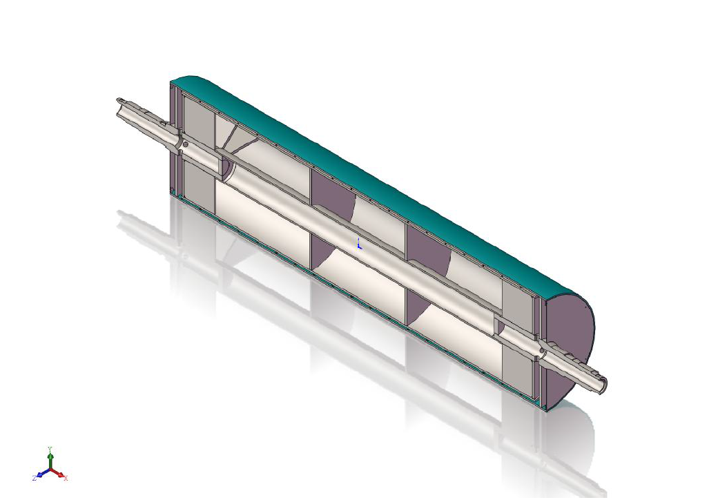 雙流道大直徑流延主冷輥,結(jié)構(gòu)簡單,由于設(shè)置了進水導(dǎo)流器和出水導(dǎo)流器,可有效降低主冷輥內(nèi)部的流動阻力,能夠使得流入輥筒內(nèi)的冷卻水量更加均勻,提高主冷輥的送水能力,提高主冷輥冷卻效率,有效提高輥筒表面的溫度均勻性,節(jié)約能耗。